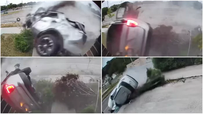 Two children and two Michigan State Police troopers were injured in a crash in Muskegon, Michigan, after a trooper was following a possible stolen SUV when another MSP car was hit by the fleeing SUV. The crash caused the SUV to slide across a sidewalk on its side, smash into the front of a home, and roll over in the yard. Two state troopers were taken to a nearby hospital with serious injuries, while the children were taken to hospitals in Grand Rapids and Muskegon.