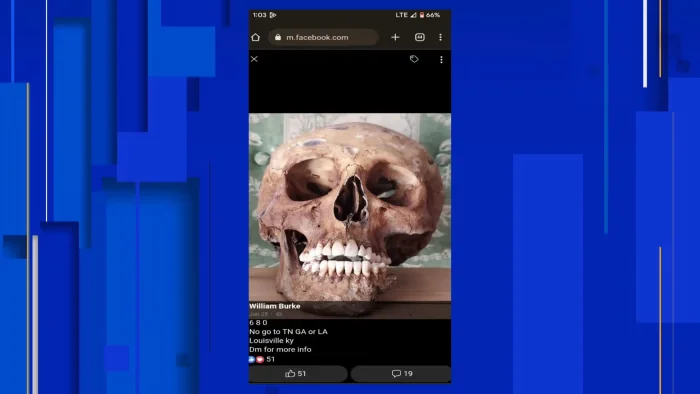 A Kentucky man, James Nott, is under investigation for his alleged involvement in the illegal online sale of human remains. The investigation began when police received a tip about possible human remains in the home of another individual involved in the scheme. Nott is accused of communicating with the seller and purchasing human skulls, which were later found decorating his home. The investigation has uncovered a network of individuals involved in the sale and transportation of human remains, including a morgue manager and an employee at a mortuary. Nott has a history of firearms possession and was found with multiple weapons during the search of his home.