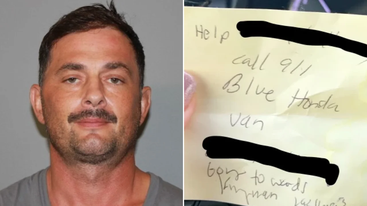 Sheriff's deputies in Arizona rescued a kidnapped woman after she discreetly handed a note to a gas station customer, pleading for help and stating that she was being kidnapped. The customer immediately called 911, providing details about the van and its direction. With the assistance of the Arizona Department of Public Safety, law enforcement located the van and arrested the suspect. The victim had been abducted by the suspect, who posed as an Uber driver, and was restrained during the journey. The quick actions of the victim, customer, and law enforcement saved her from her kidnapper, allowing her to be reunited with her family.