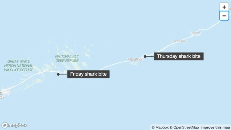 A 35-year-old angler was bitten by a shark on his foot while fishing from a dock in Summerland Key, Florida. This is the second shark bite incident in the area this week. The man was flown to a medical center in Miami for treatment, and his condition is unknown. The Florida Fish and Wildlife Conservation Commission advises taking safety precautions while in the water, such as staying in groups and avoiding water during dark or twilight hours when sharks are most active.