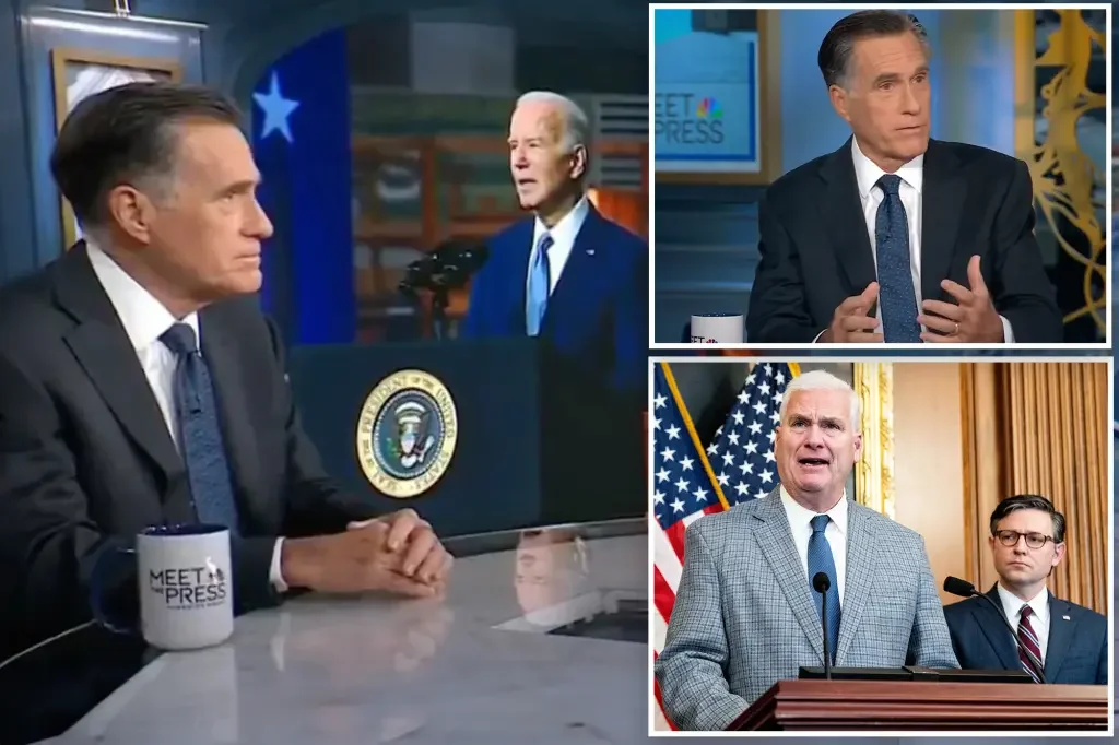 Senator Mitt Romney opposes the House GOP-led impeachment inquiry into President Biden, stating that there is no evidence of wrongdoing. Romney also criticized Hunter Biden's behavior but argued that it is not enough to go after the president. House Republicans have opened the inquiry without a formal floor vote, accusing the president of letting his family sell access abroad. Romney broke with fellow anti-Trumper Liz Cheney and expressed doubt that Donald Trump would want to stay in office for more than four years if reelected. He also mentioned potential retirement plans to support his wife's efforts in neurologic research.