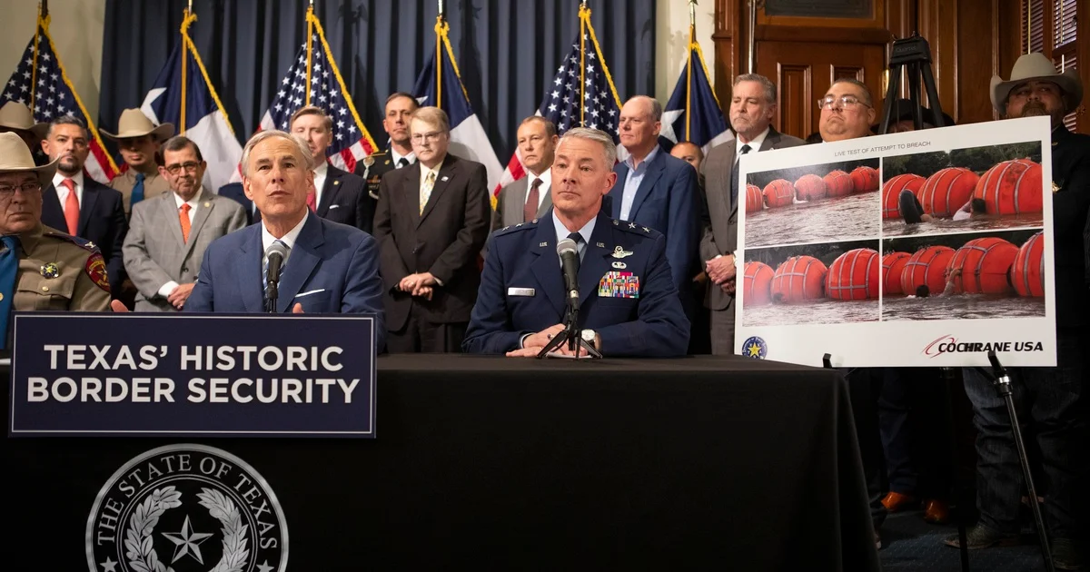 Texas Governor Greg Abbott announced the deployment of buoys down the Rio Grande to deter migrants from crossing illegally. The buoys will supplement other measures the state is taking, including the deployment of National Guard troops and the installation of concertina wire. The first 1,000 feet of buoys are being deployed near Eagle Pass because of an uptick in illegal crossings in the Maverick County area. The governor also signed six bills related to border security, including legislation that gives more power to federal agents to arrest and search migrants suspected of committing state crimes, authorizes the use of drones for border surveillance, and provides compensation to farmers and ranchers whose land is damaged by migrants.