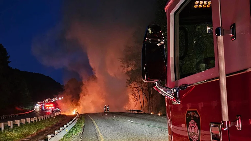 Massive Gas Tanker Fire Shuts Down I-26 in Polk County, NC