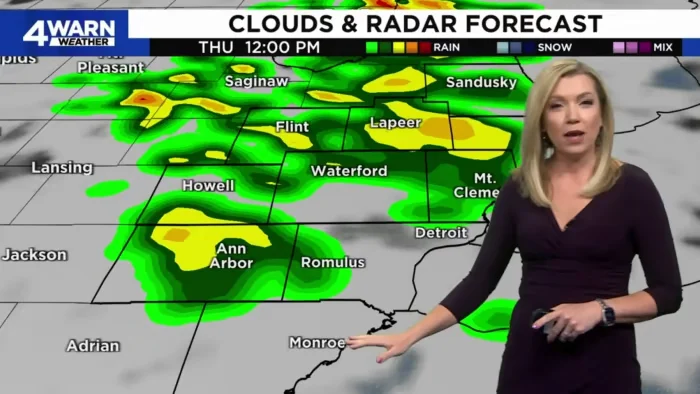 After scattered showers and storms on Tuesday, Metro Detroit becomes dry and a bit warmer on Wednesday, with temperatures reaching the mid-70s. Another round of afternoon rain is expected on Thursday, with widespread rain across the area by noon. The weekend is looking drier than previously anticipated, with temperatures rising to around 80 degrees. The 4Warn Weather app is recommended for accurate weather updates.