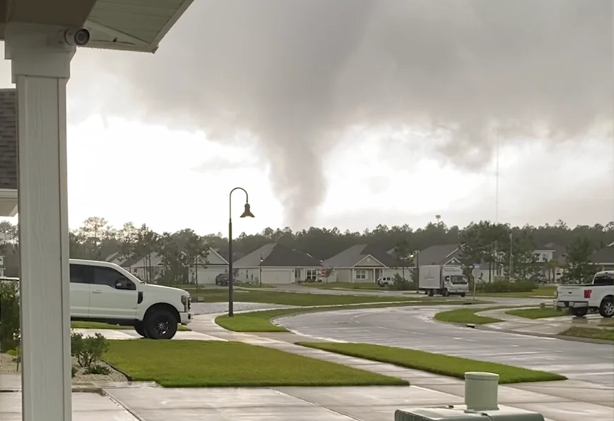 A tornado hit San Destin in Walton County, Florida, as part of a severe weather patch that moved across The Panhandle on Monday. The National Weather Service confirmed the tornado, but it is unclear if there were any injuries or damages. Severe weather is expected to continue through Monday afternoon.