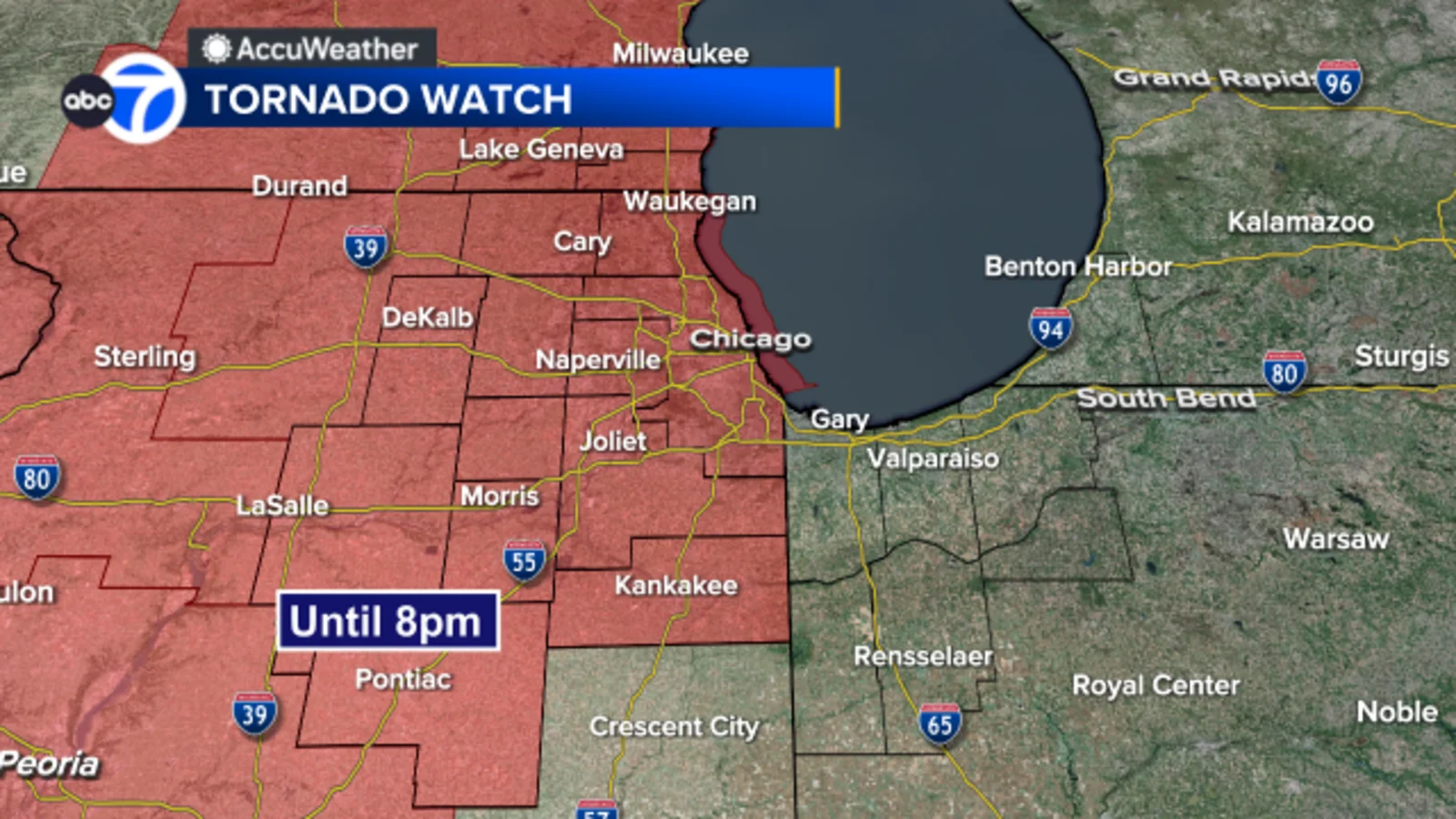 Severe storms prompt Tornado Watch in Illinois and Wisconsin.