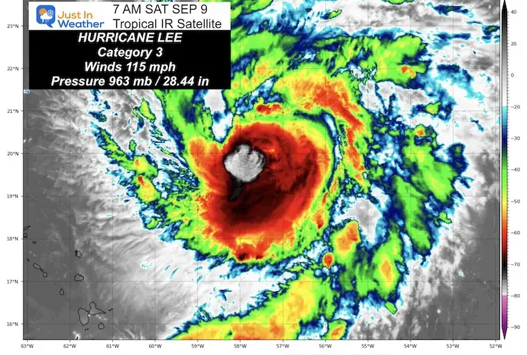 - September 9 Hurricane Lee Down To Cat 3 With 115 mph Winds And Local Thunderstorm Forecast Just In Weather