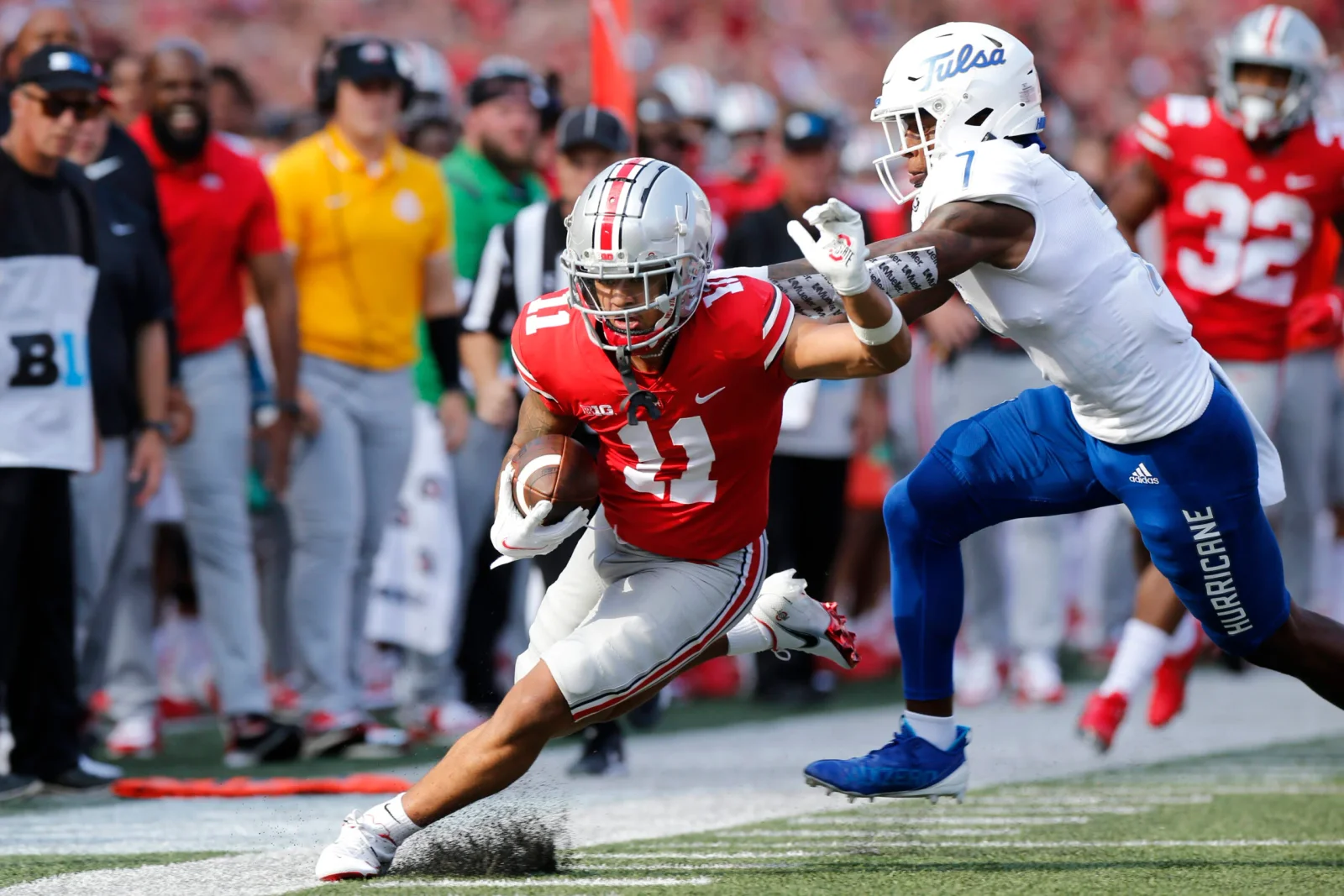 The New England Patriots had "extensive" private meetings with Ohio State prospects Paris Johnson and Jaxon Smith-Njigba during the school's pro day. Johnson, a projected first-round pick, is a versatile offensive tackle who can also play guard. Smith-Njigba, also a projected first-rounder, is a speedy slot receiver who caught 95 passes for 1,606 yards and nine touchdowns in 2021. The Patriots have needs at both positions and hold the No. 14 overall pick in this month's NFL Draft.