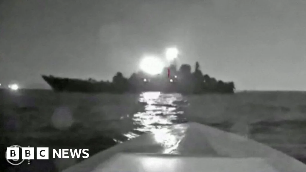 A Russian naval ship, the Olenegorsky Gornyak, was reportedly hit and damaged in a Ukrainian naval drone attack near the port of Novorossiysk in the Black Sea. Ukrainian security service sources claim that a sea drone carrying 450kg of dynamite hit the ship, causing a serious breach. Russia's defense ministry denied any damage in its report of the incident. This attack comes amidst increased clashes in the region, with Ukraine revealing the use of unmanned naval drones as a new weapon. The Novorossiysk port temporarily suspended ship movements following the assault.