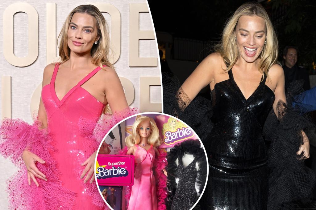 Margot Robbie channeled Superstar Barbie by changing into a black version of her pink awards show gown for the Golden Globes 2024 afterparty, pairing it with $3 million in jewels and thanking movie fans for the first-ever Cinematic and Box Office Achievement Award won by the film "Barbie," of which she served as a producer.