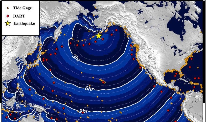 A 7.2 earthquake struck off the southern coast of Alaska's Aleutian Islands, resulting in a small tsunami that hit King Cove and Sand Point, Alaska. However, there was no tsunami threat for Oregon, Washington, or California. The initial tsunami warning for coastal areas of South Alaska and the Alaska Peninsula was later canceled.