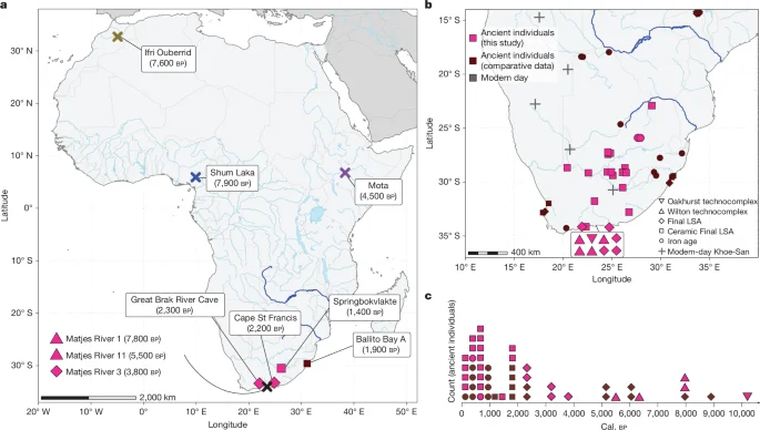 Ancient genomes from southern Africa reveal deep population stratification, long-term stability, and unique Homo sapiens-specific genetic variants, highlighting southern Africa as a long-standing refugium and providing insights into human evolution and adaptation.