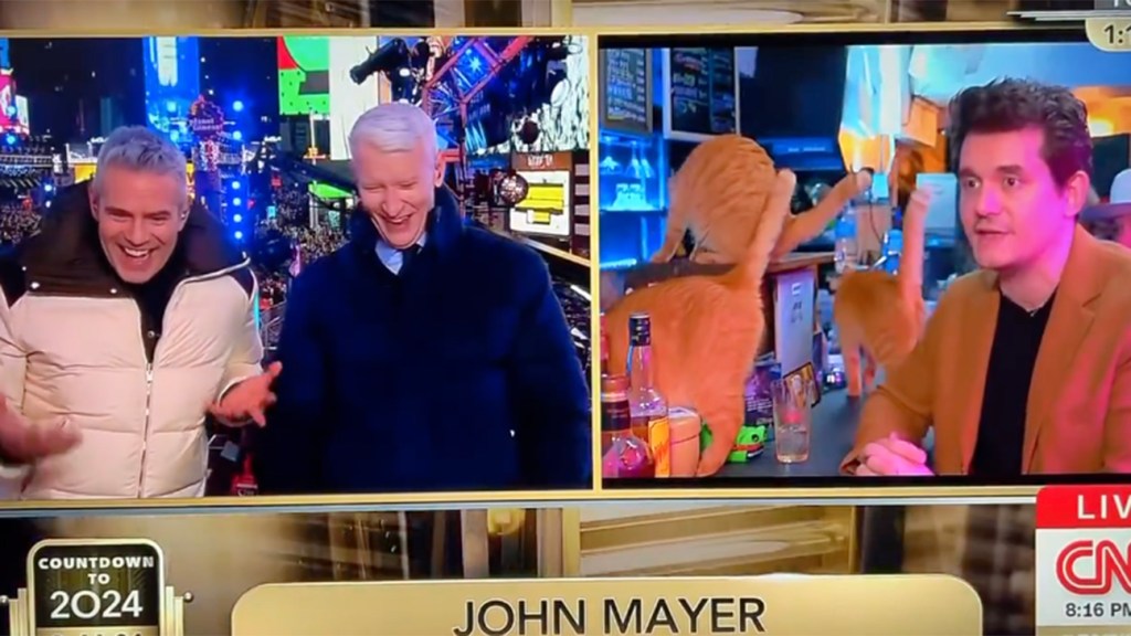 Andy Cohen and Anderson Cooper resumed their tradition of drinking on-air during CNN's New Year's Eve Live coverage, taking shots of tequila after staying sober the previous year due to a network-wide alcohol ban aimed at preserving the "respectability" of the network. Despite the ban, the duo celebrated with a toast, and Cohen had previously expressed hope that CNN would allow them to drink, citing viewer dissatisfaction with the previous year's sober broadcast. Special guests on the show included John Mayer, Jeremy Renner, and Amy Sedaris.
