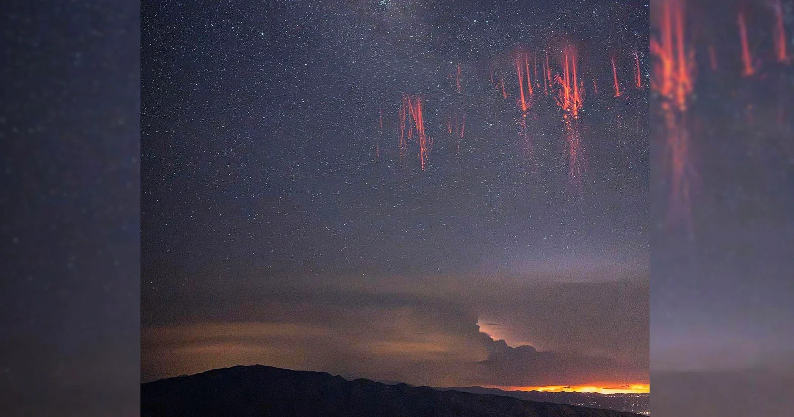 A photographer leading a storm photo tour in Arizona captured rare red lightning sprites in the night sky above Mount Lemmon. Sprites are upper atmospheric discharges from lightning that occur about 50 miles above thunderstorms. The photographer and his group were able to capture these elusive phenomena after spotting a storm in Mexico on radar. The photographer used a Nikon Z6 and a 50mm lens, and the best conditions to see and photograph sprites are dark nights with clear skies and a distant storm.