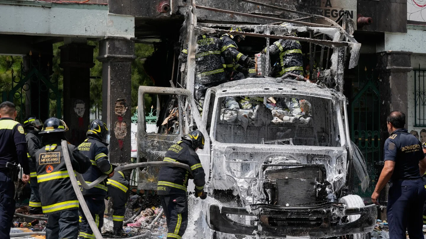 Protesters in Mexico City rammed and set fire to a military base gate to demand justice for the 43 Ayotzinapa students who disappeared in 2014, highlighting ongoing concerns about government and military involvement in the case, which remains unresolved after years of cover-up and investigation.