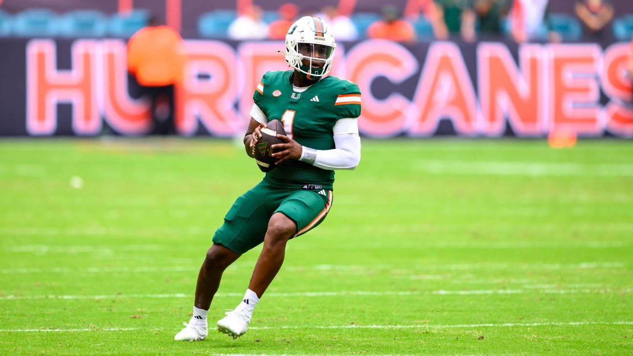 Miami quarterback Cam Ward has broken the school's single-season passing yards record, previously held by Bernie Kosar since 1984, by surpassing 3,642 yards during a game against Wake Forest. Ward, who transferred from Washington State and Incarnate Word, has also set a new record for passing touchdowns in a season for Miami, with over 30 touchdowns. His performance has made him a top contender for the Heisman Trophy. Additionally, wide receiver Xavier Restrepo is setting records for career receptions and receiving touchdowns at Miami.