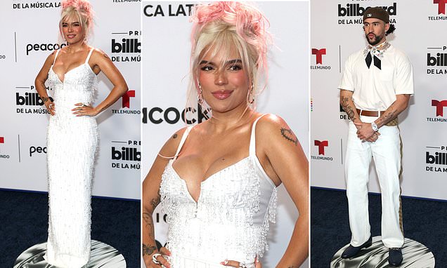 Karol G and Bad Bunny showcased their stylish outfits at the 2023 Billboard Latin Music Awards, with Karol wearing a beaded white dress and Bad Bunny sporting Gucci slacks and eye-catching accessories. Other notable fashion moments included Marc Anthony and his wife Nadia Ferreira, Chiquis Rivera, Olga Tañón, and Paula Cendejas. Peso Pluma received the most nominations and won eight awards, while Bad Bunny and Grupo Frontera were also recognized. Karol G took home five awards, and Shakira received 12 nominations and won two awards.