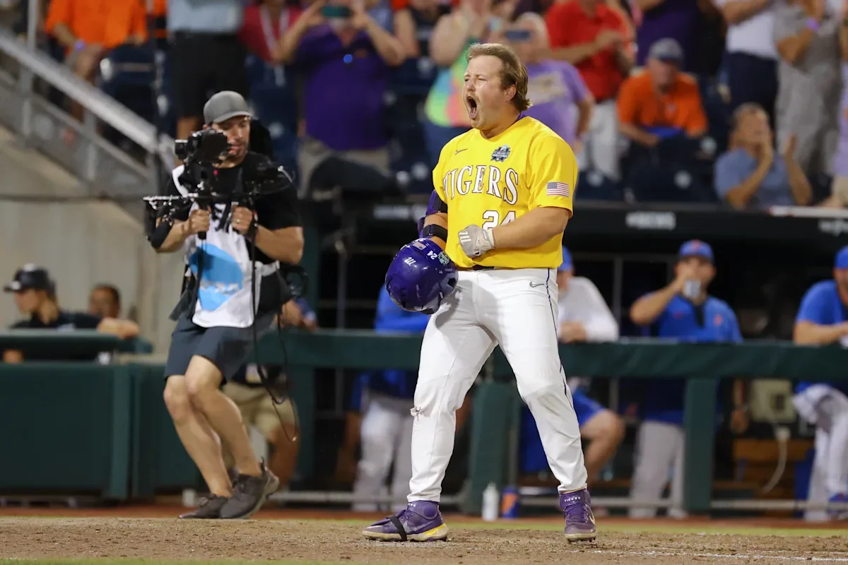 Rodney Beloso, father of LSU designated hitter Cade Beloso, tailgated ahead of Sunday's Game 2 in Omaha, Nebraska with a 25-pound gator on the grill. Despite Rodney Beloso's smoking of an actual gator, No. 2 Florida was the one in charge Sunday, building a 12-run lead over LSU through six innings. Game 3 of the Men's College Baseball World Series is scheduled for a winner-take-all Monday night.