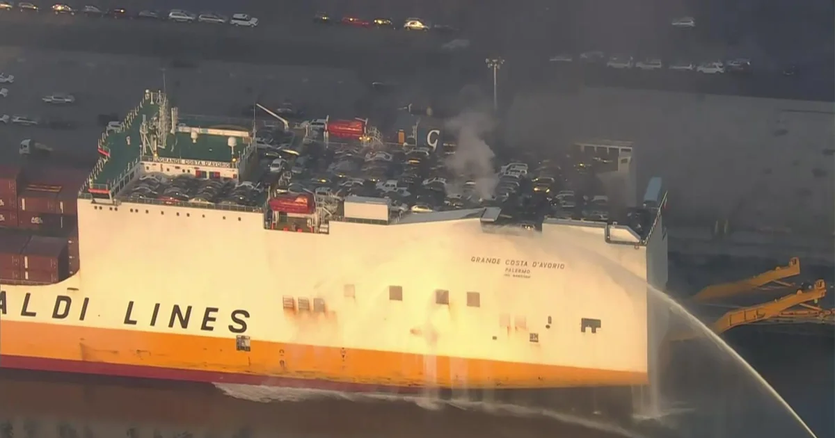 The fatal cargo ship fire that killed two Newark firefighters at Port Newark, New Jersey, has finally been extinguished after more than five days. A marine chemist confirmed that there is no longer any danger of the fire flaring up again. The operation has now shifted to salvage efforts, which are expected to take one to two months to complete. An investigation into the cause of the fire and why it was difficult to extinguish will continue. The ship, Grande Costa d’Avorio, will likely be towed away from its berth in the port. The fire led to speculation about electric vehicles on board, but the ship's manifest indicated that there were no electric vehicles. Normal operations at the port have resumed, and there have been no significant environmental effects from the fire. Funeral services for the two firefighters will be held this week.