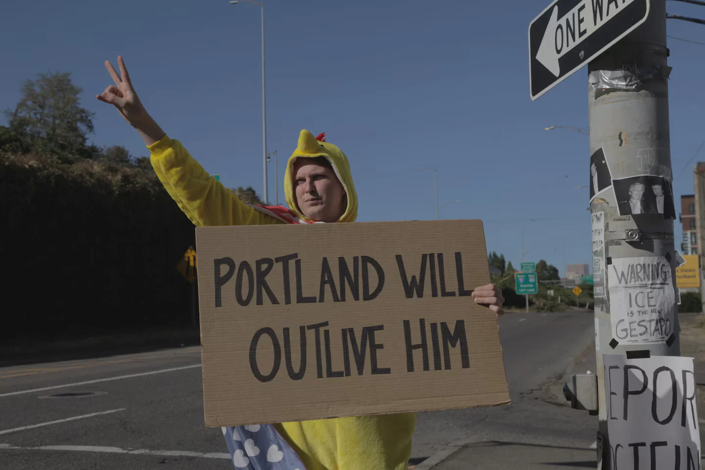 Despite President Trump's claims of Portland being 'war-ravaged,' residents depict a peaceful city with sunny weather and everyday life, contradicting the characterization.