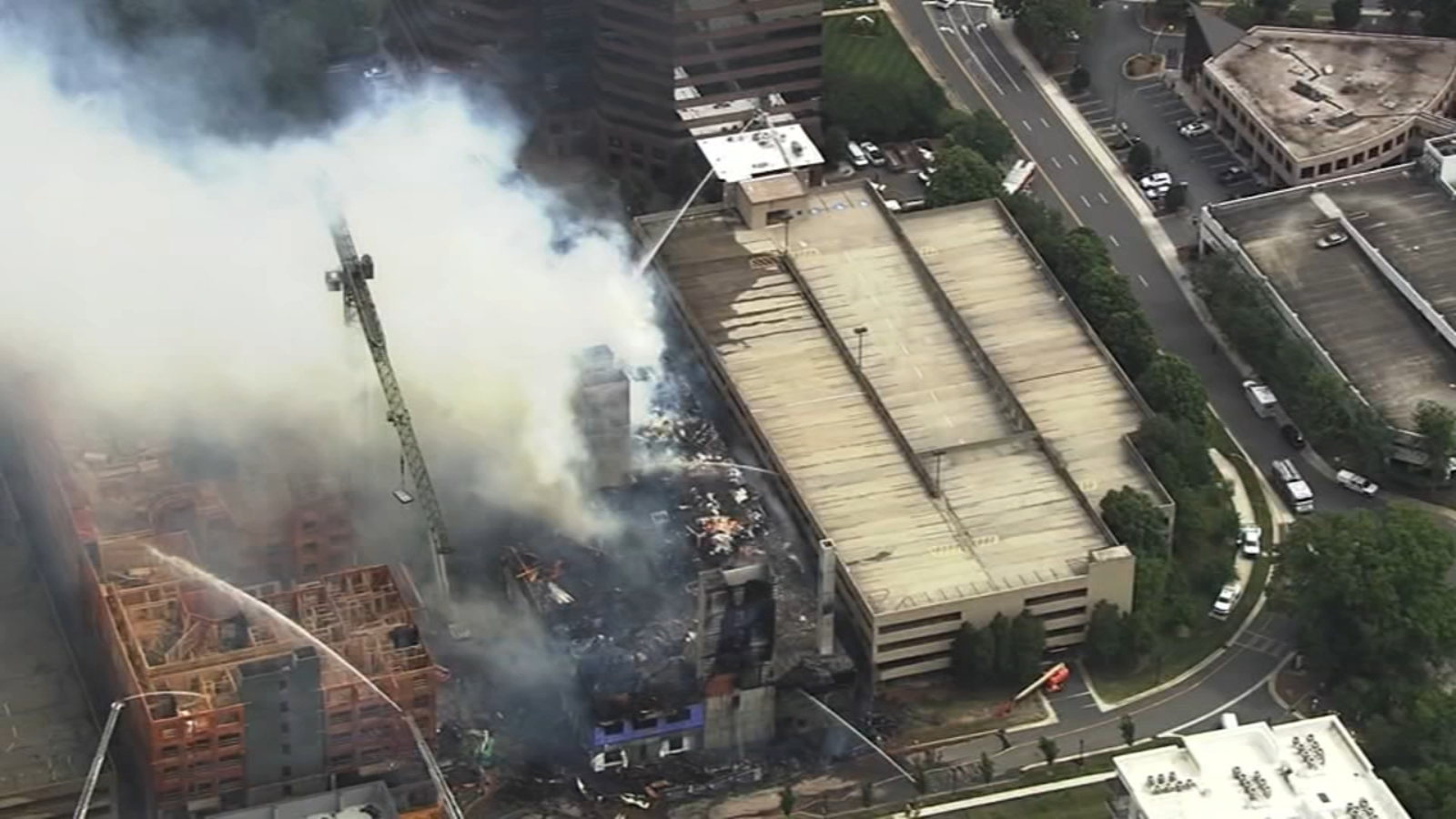 A five-alarm fire at an Aurora apartment building under construction has closed the intersection of Colfax Avenue and Peoria Street, with smoke visible across the metro area. This is the second large fire at an Aurora apartment construction site in three days. No other buildings were damaged, and the cause of the fires is currently under investigation.