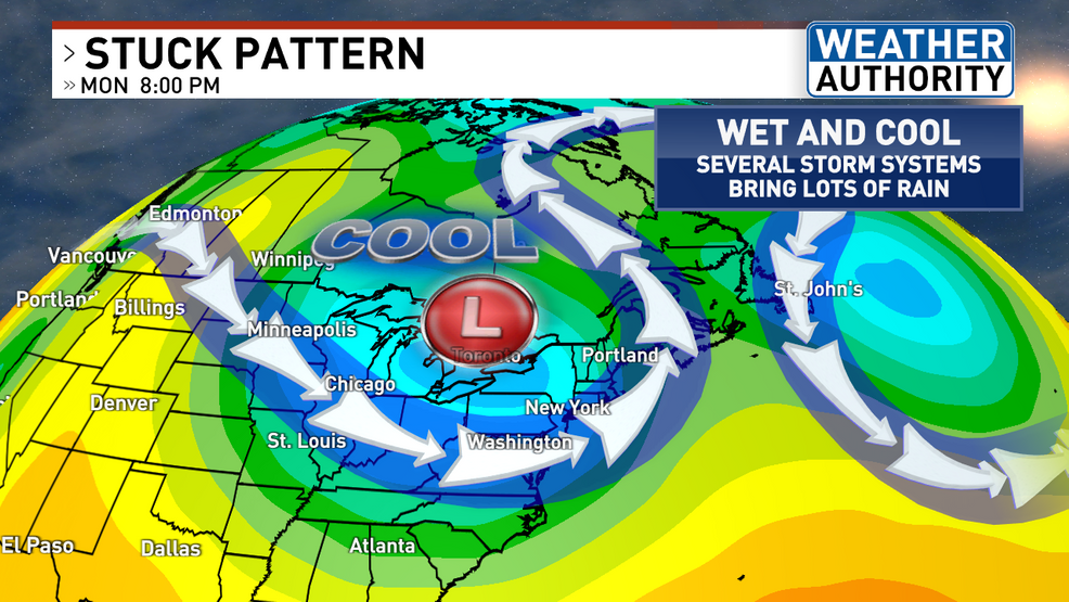 Unseasonably cool weather continues through Labor Day weekend with temperatures in the 40s and 70s, a dry spell, and a chance of rain arriving Thursday, followed by even cooler air next week, with a potential for more rain and a brief warm-up mid-month.