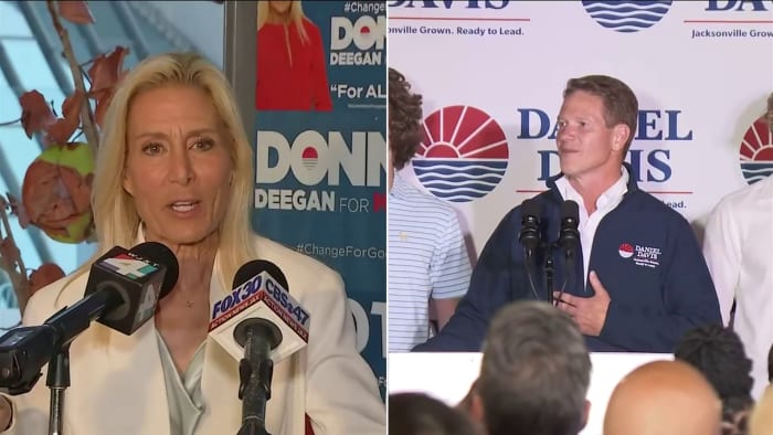 Voters in Jacksonville, Florida, will elect a new mayor today in a contentious race between Republican Daniel Davis and Democrat Donna Deegan. Deegan led in the first election with 39% of the vote to Davis’ 25%, but the runoff race is expected to be close. Policing has become a central issue in the campaign, with Davis framing Deegan as anti-police and Deegan accusing Davis of intentionally mischaracterizing her. The candidates also differ on whether tax dollars should be used to remove a Confederate monument and how to address police and fire pensions.