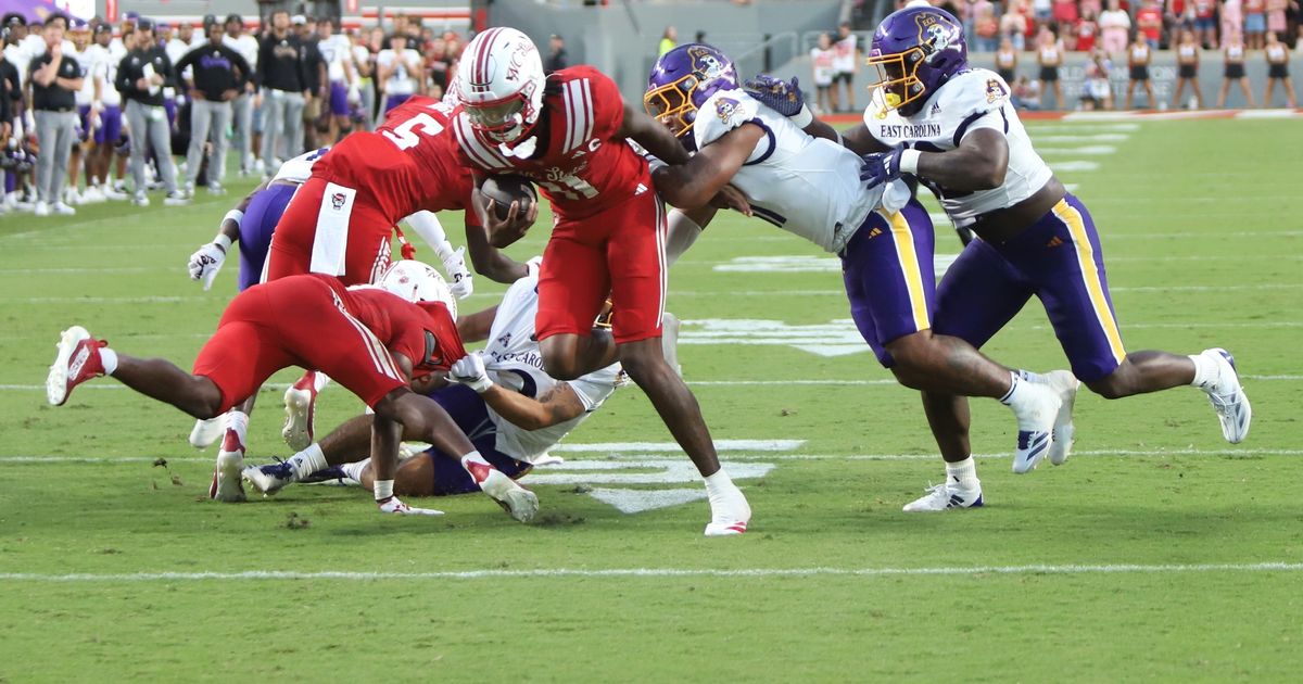NC State leads East Carolina 24-17 in the fourth quarter of their season opener at Carter-Finley Stadium, with NC State initially dominating but ECU closing the gap in the second half.