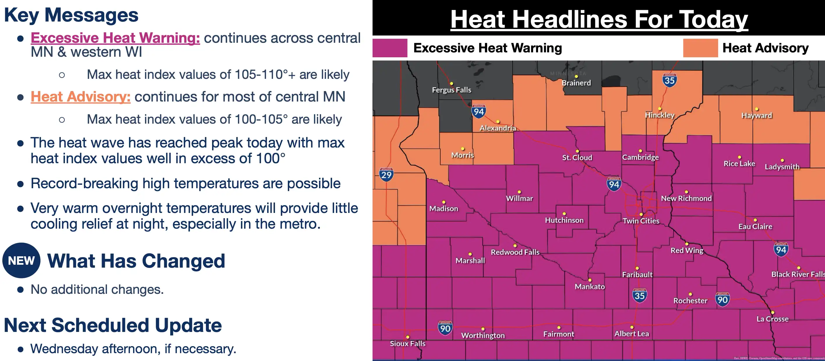 Record high temperatures were set in the D.C. area today, with Washington reaching 101 degrees. An excessive heat warning is in effect for Monday, with heat index values potentially hitting 110 degrees. There is a slight chance of thunderstorms this evening and a better chance tomorrow. Rainfall over the next week may help slightly with drought conditions, but significant improvement is unlikely.