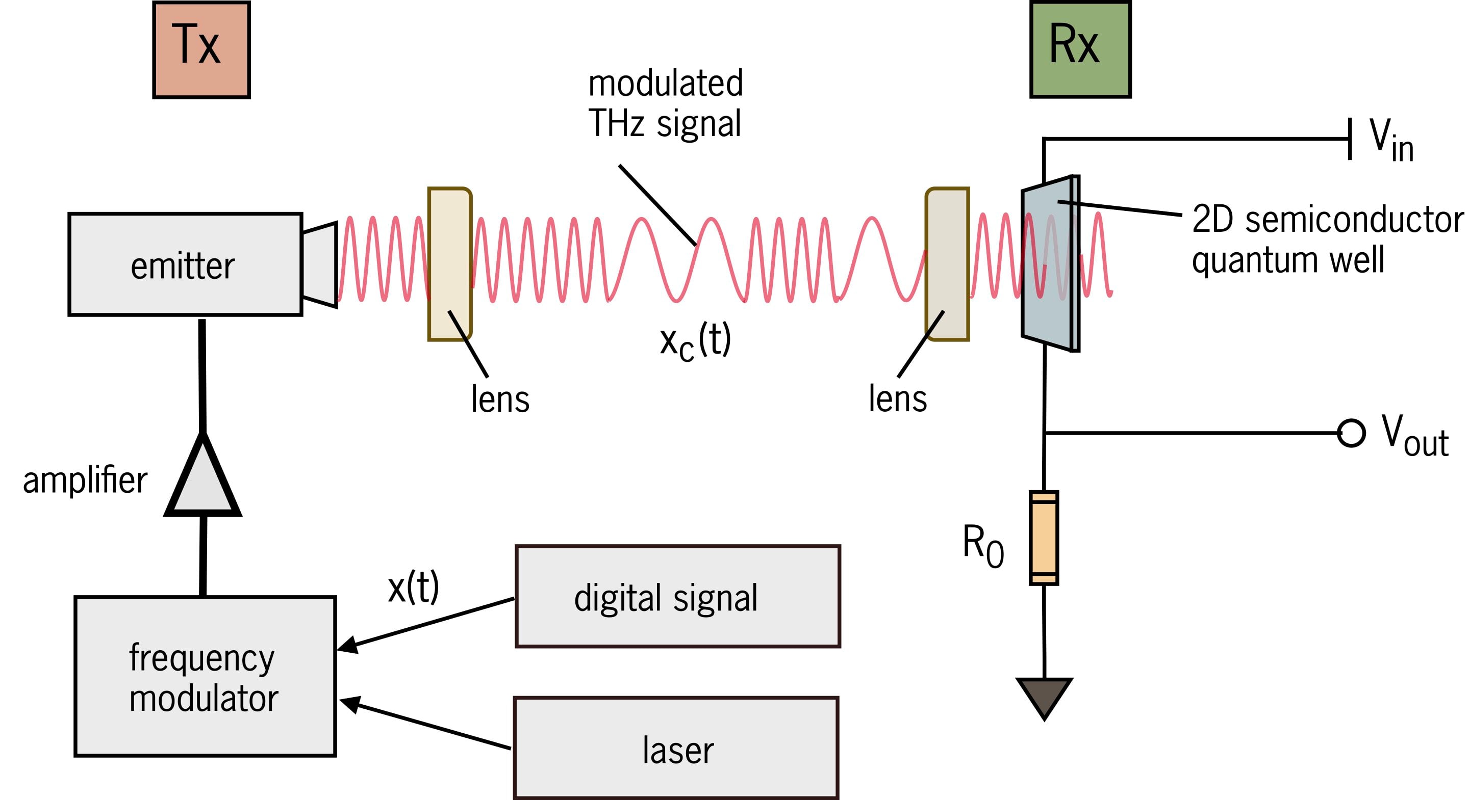 Researchers have proposed a chip-scale system for short-range wireless communication in the terahertz frequency range, utilizing a transmitter and a quantum-scale receiver. The receiver incorporates a 2D quantum well and utilizes Floquet engineering to enhance its electrical conductivity. This breakthrough enables the development of a quantum wireless receiver capable of detecting and decoding frequency-modulated wireless data on a small scale. The research opens up possibilities for next-generation wireless devices, circuits, and elements, with potential applications in wireless communication, radar, and quantum technology.