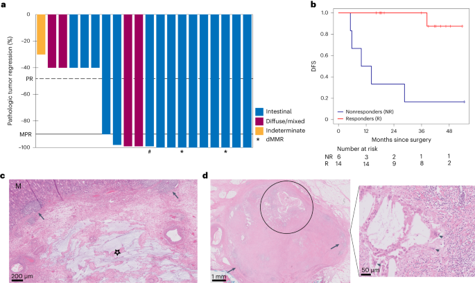 The phase 2 PANDA trial investigated the safety, efficacy, and immunologic correlates of atezolizumab plus chemotherapy in patients with resectable, nonmetastatic gastric and gastroesophageal junction adenocarcinoma. The study found that the combination treatment led to high pathologic response rates, with 70% of patients showing major pathologic responses and 45% achieving pathologic complete responses. Pathologic response was associated with significantly higher disease-free and overall survival rates. Additionally, circulating tumor DNA status was associated with response and disease-free survival, and biomarker analyses suggested that the functional status of CD8+ T cells may be a critical parameter in predicting response to the treatment.