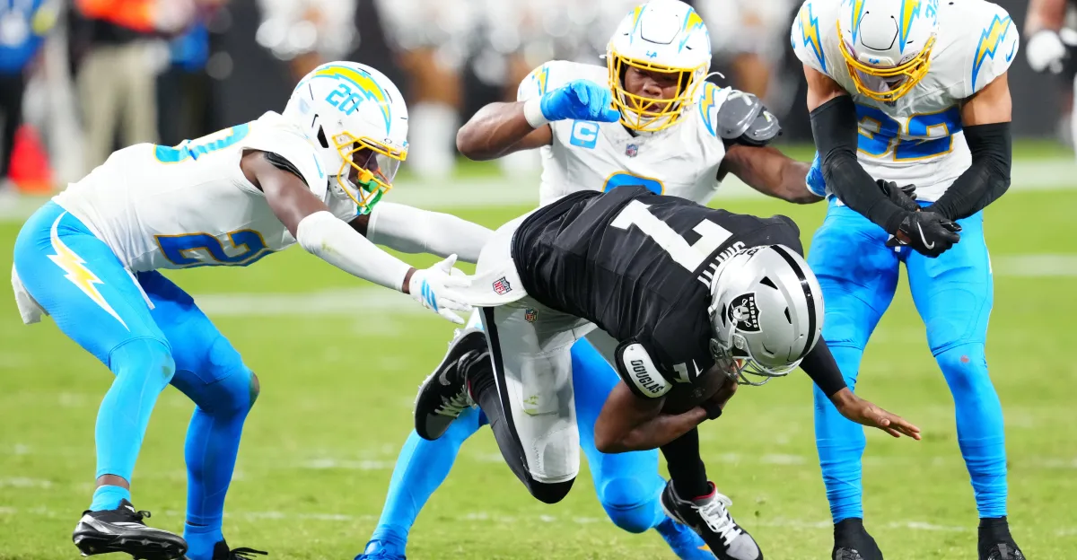 The Los Angeles Chargers defeated the Las Vegas Raiders 20-9, with their defense intercepting Geno Smith three times and Justin Herbert performing strongly, marking a promising 2-0 start to the NFL season and a potential challenge to the AFC West dominance of the Chiefs.