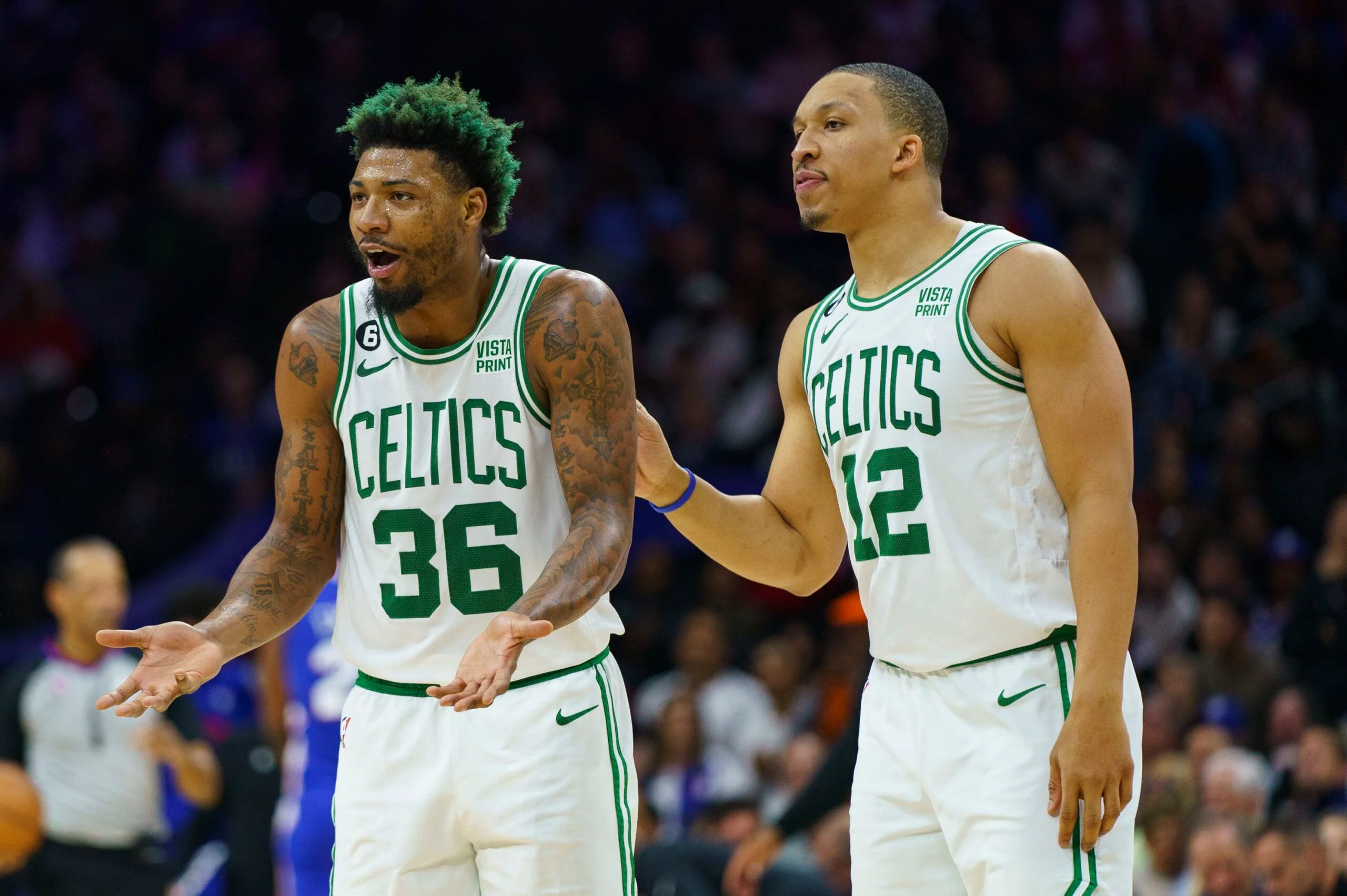 Draymond Green criticized former Celtics forward Grant Williams for his involvement in a scuffle during the Hornets-Warriors game, urging him to stop acting like a tough guy and questioning his behavior this season. Green referenced Williams' past confrontations and suggested that talking too much got him traded from the Mavericks. The two players had a history of confrontation during the 2022 NBA Finals, but Green's recent comments indicate a strained relationship, ending with a plea to "pray for Grant Williams."