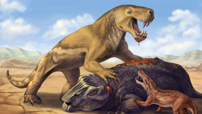 Scientists have discovered that a saber-toothed beast called Inostrancevia briefly dominated southern ecosystems after migrating across the supercontinent Pangaea from what is now Russia to South Africa. Inostrancevia belonged to an ancient group of mammals called the gorgonopsians that went extinct during the “Great Dying,” also known as the Permian-Triassic or late-Permian mass extinction. The discovery suggests that top predators were "canaries in the coal mine" for the mass extinction and sheds light on the great die-out that’s unfolding today.