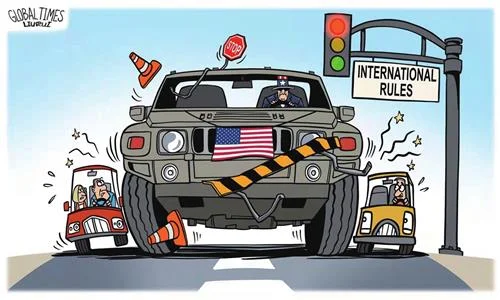 The article discusses a year of challenges to the rules-based international order during Trump's presidency, highlighting his trade war and tariff policies, and their implications for global politics and economics.
