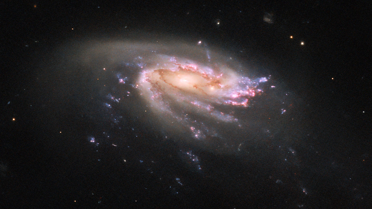 The Hubble Space Telescope has captured an image of the jellyfish galaxy JO206 in the constellation Aquarius, showcasing a colorful star-forming disk surrounded by a pale, luminous cloud of dust. The tendrils of star formation trailing the galaxy are formed by the interaction between galaxies and the intra-cluster medium, providing astronomers with a unique opportunity to study star formation under extreme conditions. Surprisingly, Hubble revealed that there are no significant differences in star formation between the galaxy's main disk and its tentacles, suggesting that the environment has only a minor influence on the formation of newly formed stars.