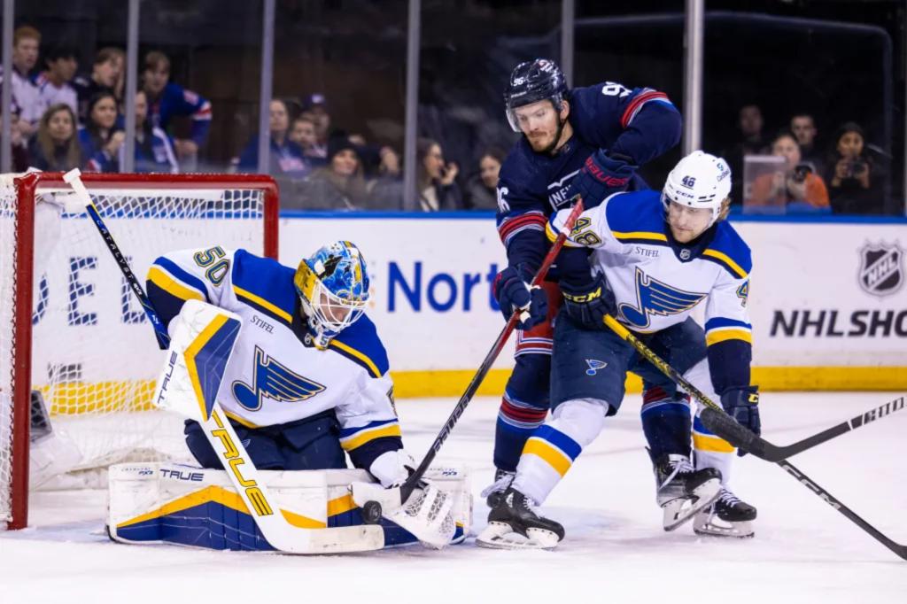 The New York Rangers secured a 4-0 win over the St. Louis Blues in a strong start post-trade-deadline, with newly acquired forwards Jack Roslovic and Alex Wennberg making impactful debuts. Goalie Igor Shesterkin continued his dominant stretch with 26 saves in his second shutout of the season, while the team's new-look fourth line and defensive pairs also made significant contributions. The Rangers' speed and transition game were key factors in their victory, as they capitalized on the Blues' defensive struggles and strong power play performance.