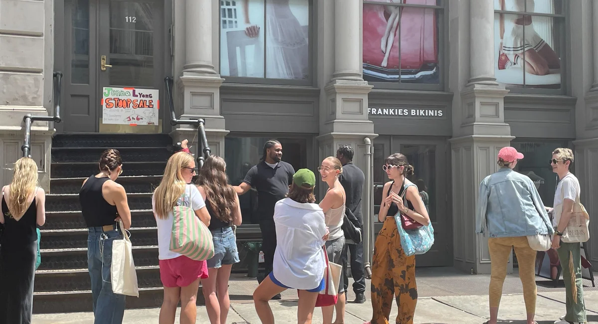 Jenna Lyons, former J. Crew president and current "Real Housewives of New York City" star, held a "stoop sale" in Lower Manhattan that attracted over 100 shoppers. The sale, announced on Instagram, featured items from Lyons' personal collection and included a $15 cover charge, with half the proceeds going to Planned Parenthood. Fans and curious shoppers lined up for hours, with some hoping to see Lyons in person. The event was filmed for the upcoming season of "RHONY."
