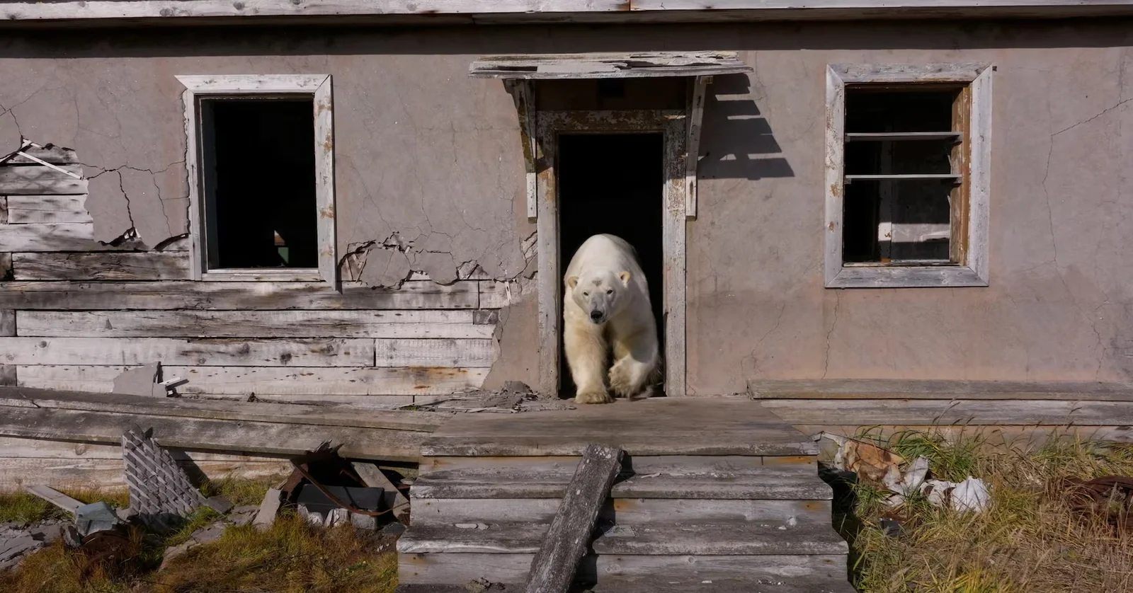 Polar bears have taken over an abandoned Soviet-era research station on Kolyuchin Island in Russia's Arctic, with footage showing them roaming and using the buildings as shelter, highlighting the impact of climate change on Arctic wildlife and human structures.