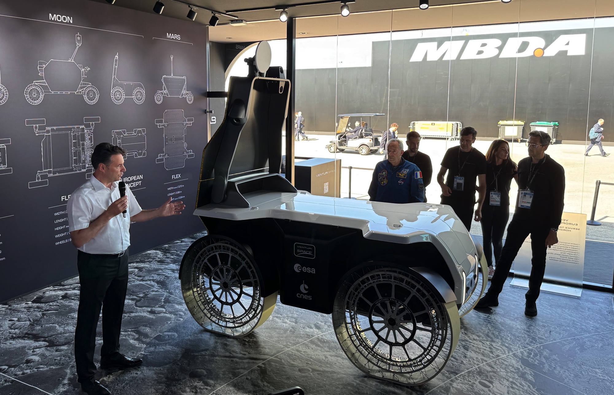 Venturi Space unveiled Mona Luna, an all-European lunar rover designed for exploration and potential mining, featuring advanced suspension, steering, and thermal management systems, aiming to fill Europe's gap in lunar exploration capabilities and seeking support from ESA.