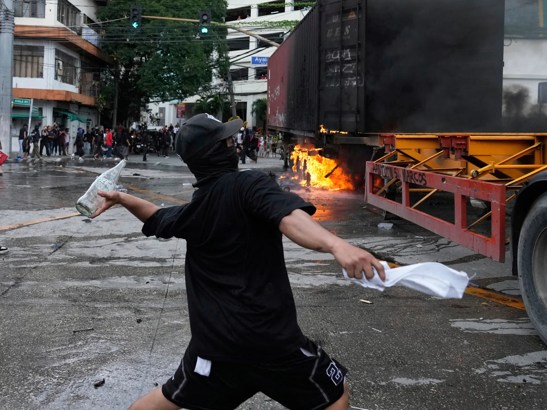 Tens of thousands of Filipinos protested in Manila against government corruption related to flood control projects, leading to clashes with police, arrests, and injuries, amid ongoing outrage over alleged anomalies and misuse of public funds.