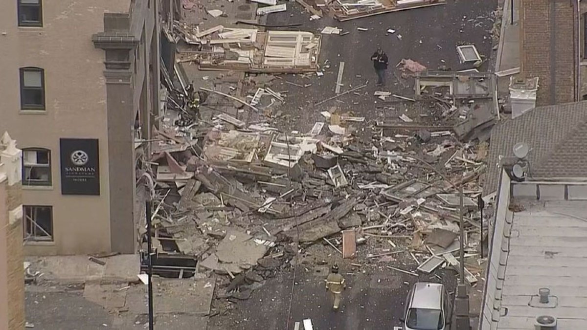 Two gas explosions caused by a leaking natural gas leveled a convenience store and damaged buildings housing a day-care center and offices in Southeast D.C. Firefighters had evacuated the buildings less than 30 minutes before the blasts, possibly sparing 16 children in the day-care center from harm. One person was transported to a hospital with minor injuries. The explosions appeared to have happened after a vehicle struck a gas meter attached to one of the buildings during normal operations.