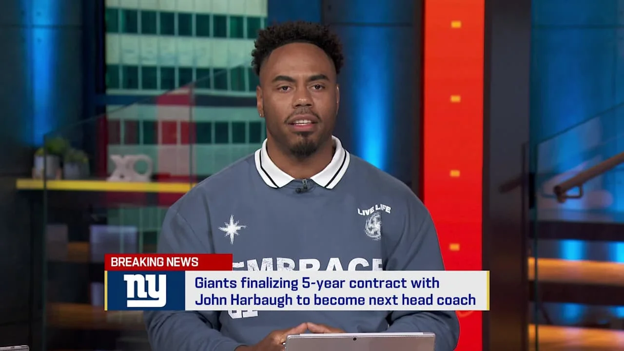 NFL Network's Good Morning Football analyzes the New York Giants' five-year deal to hire John Harbaugh as head coach, with the hosts reacting and weighing the implications for the team and NFC prospects.