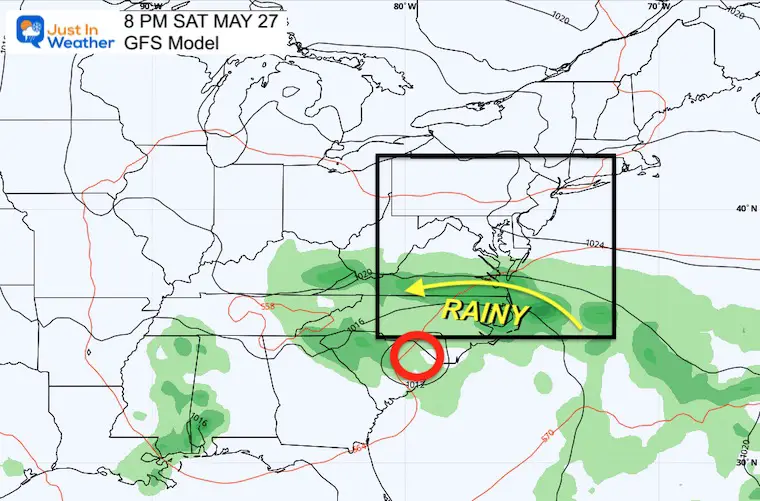 Memorial Weekend weather forecast predicts chilly winds, rain, and waves up to 14 feet in Ocean City, Maryland, due to a storm forming near Miami. The storm will slowly track closer and inland, bringing rain to the Southeast US. North and South Carolina will experience a washout, while the Mid-Atlantic region will have scattered showers and breaks. Sunday will be the coolest day with the strongest winds and best chance for rain. The offshore wave height will range between 8 and 14 feet east of Rehoboth and Ocean City, with dangerous rip currents.