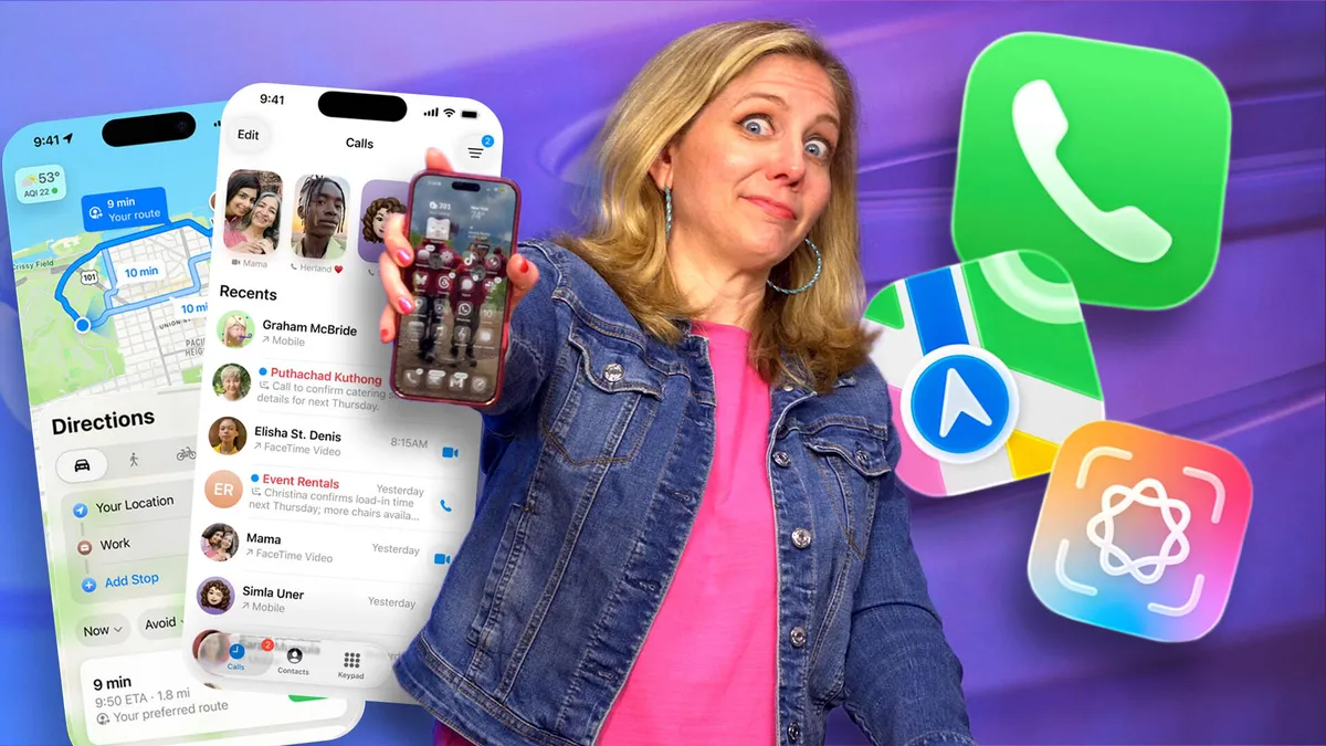 The article discusses the upcoming iOS 26 updates, highlighting the new Liquid Glass interface and more impactful features like smarter Maps, calendar integration from screenshots, and robots intercepting or translating calls, which are more significant than the visual changes like clear app icons.