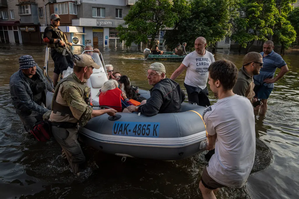 Russian snipers are firing on Ukrainian rescue boats evacuating civilians from flooded towns in eastern Ukraine after the Kakhovka Dam was destroyed last week. At least 150 people have been rescued from Russian-occupied areas by Ukrainian forces, while nearly 2,750 were evacuated from flooded regions controlled by Ukraine. The rescue efforts have been made treacherous due to Russian attacks, with some evacuees even being forced to show Russian passports if they wanted to leave the Russian-occupied flooded areas.