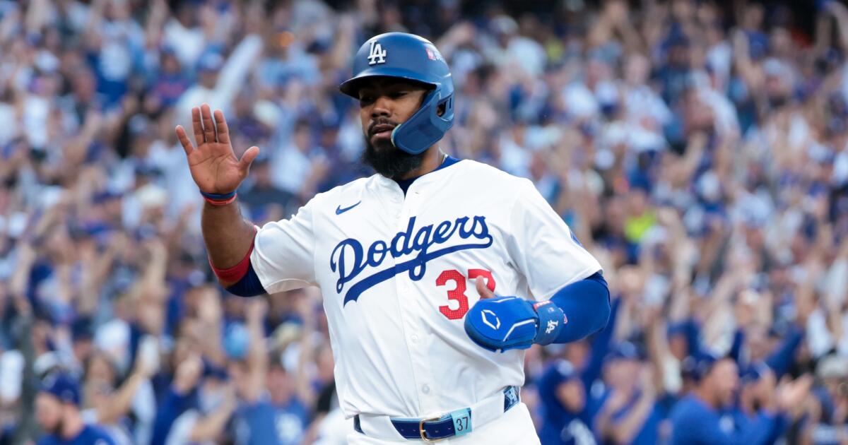 Teoscar Hernández of the Dodgers acknowledged a mistake during a bizarre 8-6-2 double play in the NLCS opener, which went viral; he reacted quickly after realizing he missed an opportunity to tag up, and the play was notable for its unusual nature and rarity in postseason history.