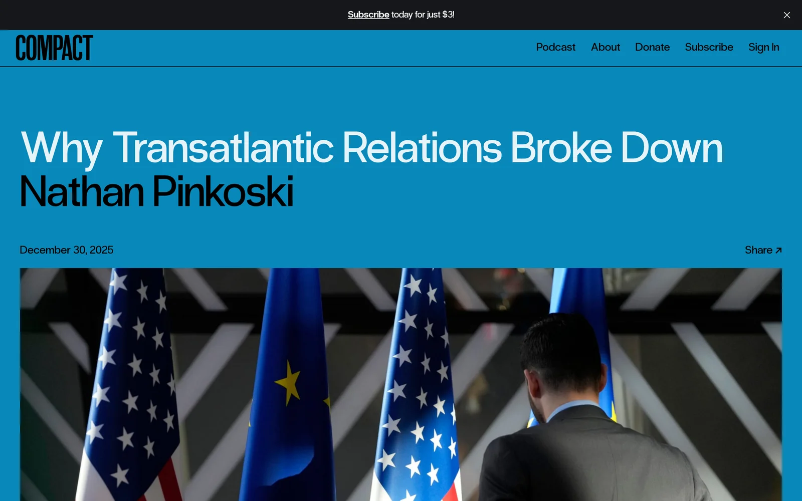 The article discusses the deterioration of transatlantic relations, highlighting Europe's pursuit of strategic independence through economic and regulatory measures that challenge US interests, and the historical and political factors shaping this shift, including Europe's efforts to counter US economic dominance and the rise of regulatory imperialism.