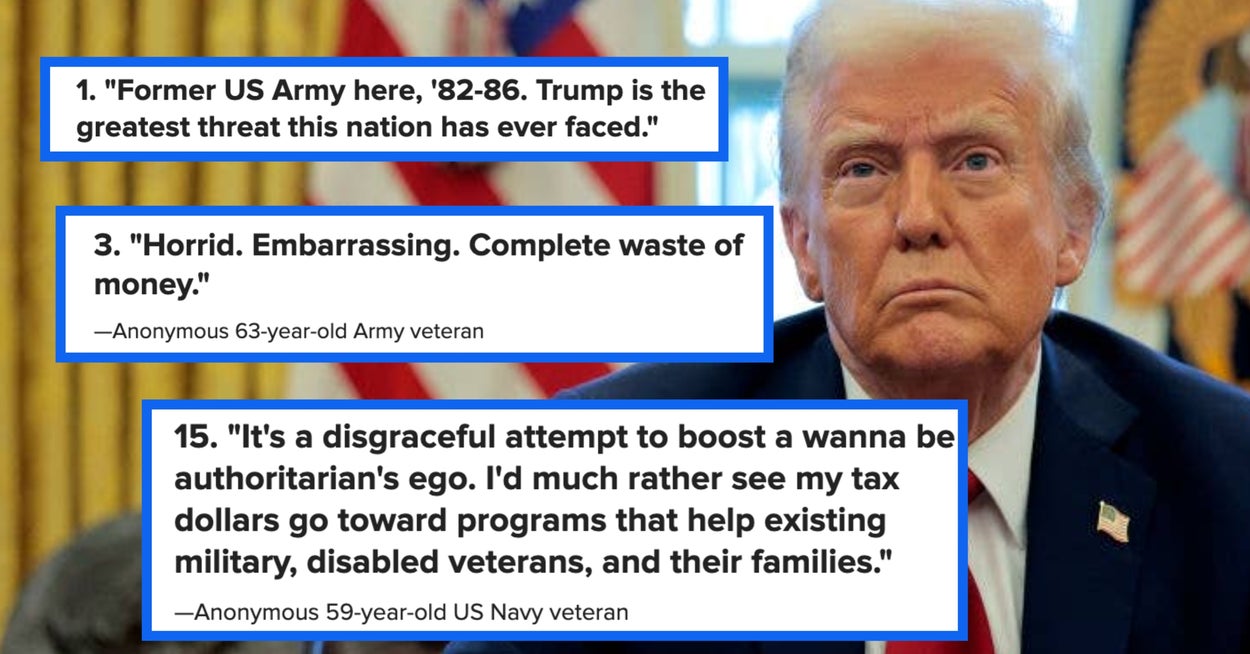 The article compiles diverse opinions from active and retired US military members and veterans regarding Trump's 250th Army anniversary parade, with many criticizing it as a vanity project, a waste of taxpayer money, and disrespectful to service members, while a few see it as a meaningful celebration. The event's cost, political implications, and impact on military morale are central themes.