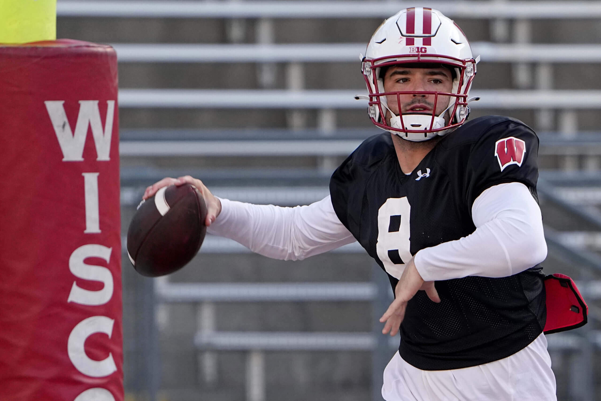 Wisconsin football completes its eighth spring practice with two players entering the transfer portal, leaving the team with 86 scholarships. The starting quarterback competition remains ongoing, with both Tyler Van Dyke and Braedyn Locke showing moments of promise and mistakes. The team is also evaluating options at cornerback and defensive line, with an emphasis on live snaps to improve fundamentals and eliminate past mistakes.